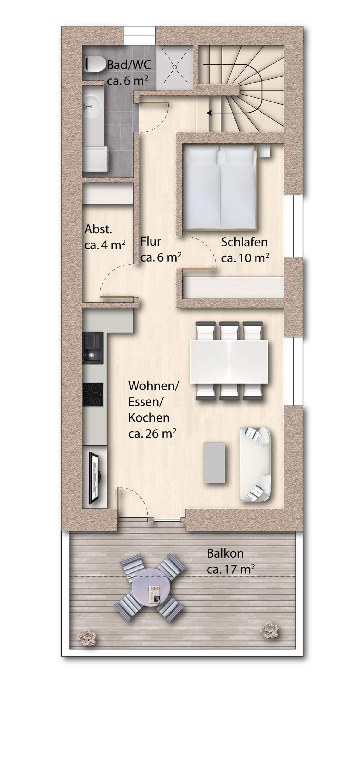 Licht, Raum, Komfort: 3-Zimmer-Wohnung mit verglastem Balkon