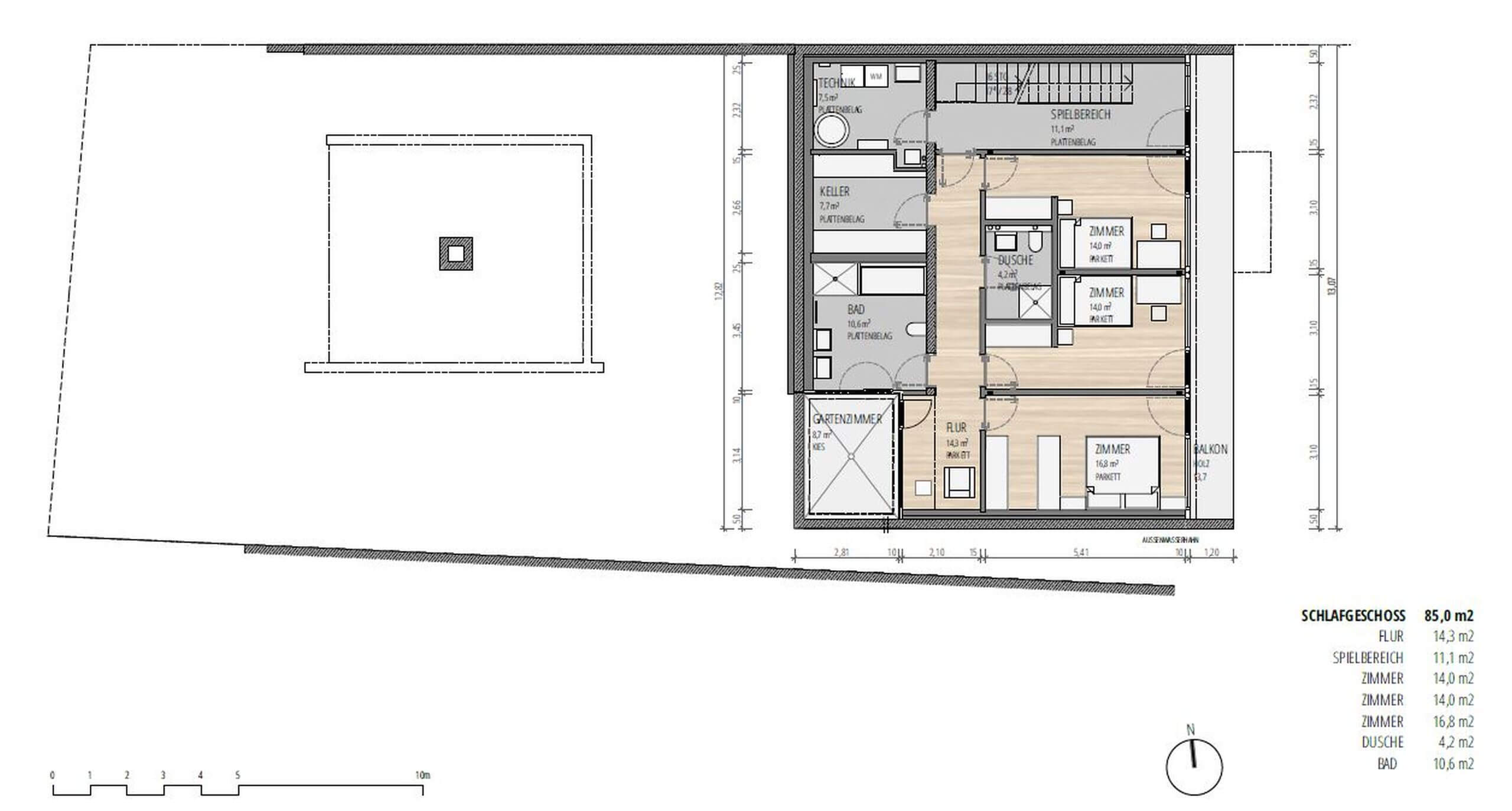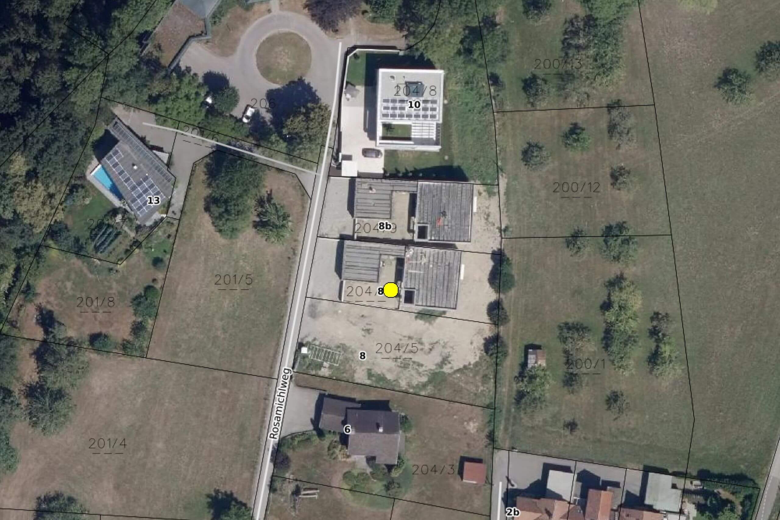 Die Grundstücke werden über den Rosamichlweg erschlossen. Parkmöglichkeiten für Gäste befinden sich vor der Garage.